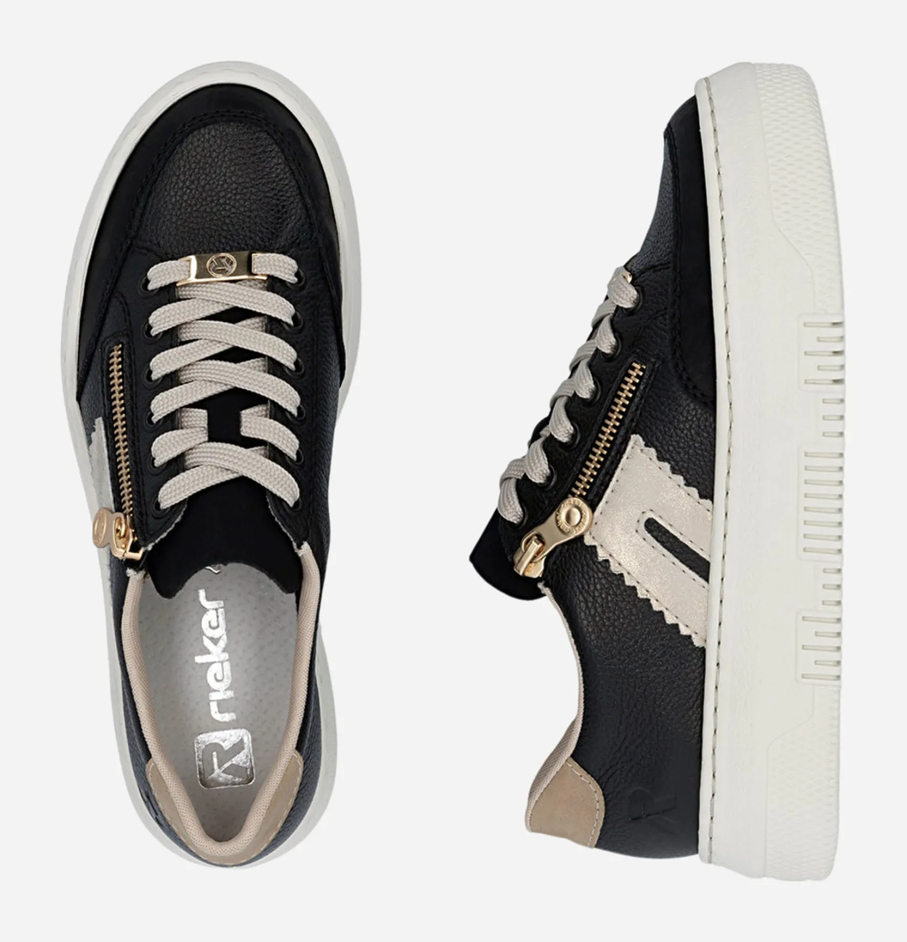 Artikelnr: SKU1PARHOaOly Kategorier: Damskor, Mer För Dam, Rieker, Sneakers, Stora Storlekar (Stl. 42-43), Vårskor Etiketter: RIEKER, Svart, Vit Varumärke: RIEKER